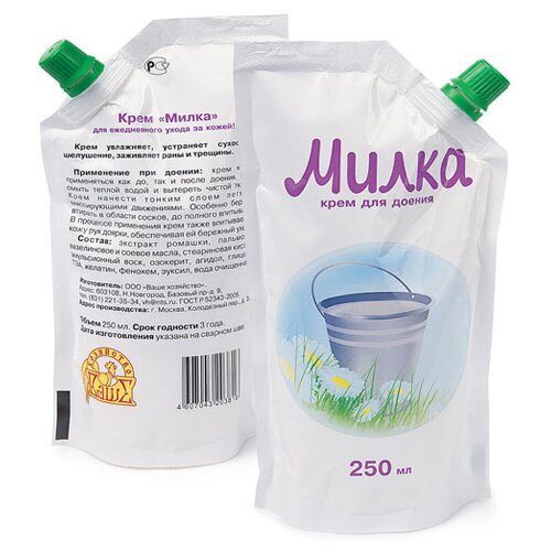 «Милка» — крем для доения и ухода за выменем коров. Он увлажняет, устраняет сухость и шелушение, заживляет раны и трещины.