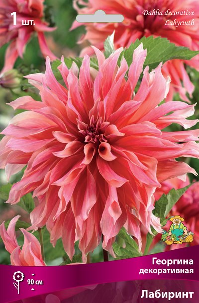 Лабиринт - высота растения 90 см. Цветок диаметром 18 см. Ярко-розовый центр с кремово-розовыми краями, лепестки подкручиваются.