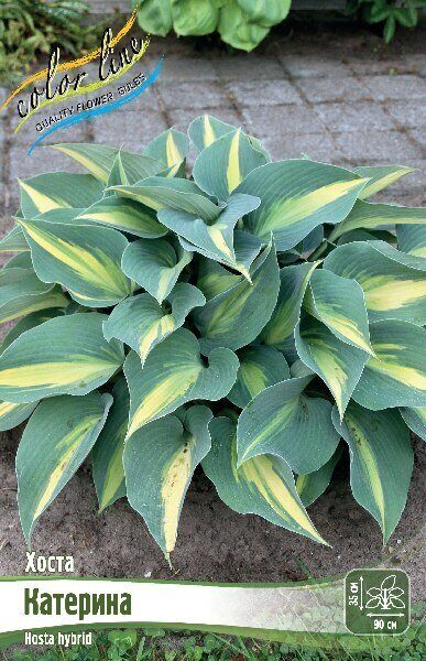Листья плотные тёмно-сине-зеленые с лаймовым центром. Цветки лавандовые. Листья размером 15х10 см, Высота цветоносов 70 см. Куст высотой до 40 см. Ширина куста до 70 см. Период цветения июль. Зона зимостойкости: 3 (-40 ° С).