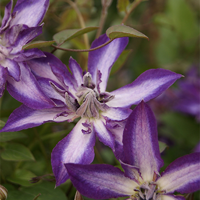 НОВИНКА! Цветки диаметром 6-8 см, фиолетовые с кремовой полосой по центру лепестка. Цветёт на побегах текущего года в конце июня-сентябре. Высота 200-250 см, ширина 60 см. Рекомендуется для патио, обелисков, стен и заборов. На зиму в средней полосе требуется обязательное укрытие. Обрезка: 3 (сильная). На высоте 25см от земли. Местоположение: солнце, полутень. Почва:клематисы предпочитают плодородную супесчаную или суглинистую почву, богатую перегноем, рыхлую, от слабощелочной до слабокислой реакции. Обрезка: 1 группа (не нуждается) Использование:вертикальное озеленение. Особенно хорош для небольших участков.