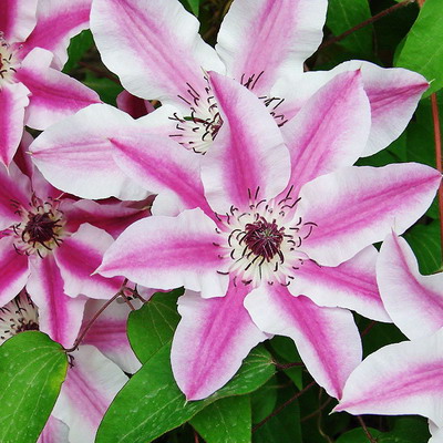 Лиана длиной до 1,5-2,5 метров. Цветки лилово-розовые, с тёмно-розовой полоской и светло-коричневыми тычинками. Цветение: май, июнь и повторно сентябрь. В местах солнечных цветки блекнут. Умеренно растущий. Цепляется за опоры листовыми черешками. Используется для посадки у всех садовых опор, решёток или среди кустарников. Особенно хорош для использования в полутенистых местах. Местоположение: солнце, полутень. Почва:клематисы предпочитают плодородную супесчаную или суглинистую почву, богатую перегноем, рыхлую, от слабощелочной до слабокислой реакции. Обрезка:2 группа (слабая) Использование:вертикальное озеленение.