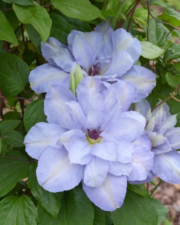 ПОЛУМАХРОВЫЙ, очень крупный голубой цветок . Н 150-200см, Обрезка: VII, 130см, Цветение: 5-7/9, Ø 22см