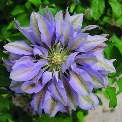 Сорт английской селекции. Цветки диаметром 13-14 см, махровые, светло-лилово-сиреневые, к концу цветения светло-голубые. Иногда появляются лилово-зелёные лепестки. Цветёт в мае-июне на прошлогодних побегах и в сентябре на побегах текущего года. Тычинки с кремово-жёлтыми пыльниками. Высота 250-350 см. Обрезка слабая (II группа).