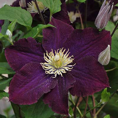Обильноцветущий польский сорт. Цветки тёмные, пурпурно-фиолетовые с золотистыми тычинками, раскрываются с июня по сентябрь на побегах прошлого года. Высота 2-3 м. Идеально подходит для посадки у ограждений, стен, беседок, пергол, решёток и пр. Может карабкаться по натуральным опорам, напр. небольшим деревьям и кустарникам. Особенно хорош для выращивания в больших контейнерах на балконах и террасах. Местоположение: солнце, полутень. Почва:клематисы предпочитают плодородную супесчаную или суглинистую почву, богатую перегноем, рыхлую, от слабощелочной до слабокислой реакции. Обрезка:2 группа (слабая) Использование:вертикальное озеленение.