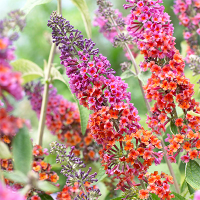 Красивоцветущий кустарник с поникающими ветвями высотой до 3 метров. Цветки сиренево-оранжевые. Период цветения июль-сентябрь. Морозостойкость -27°С.