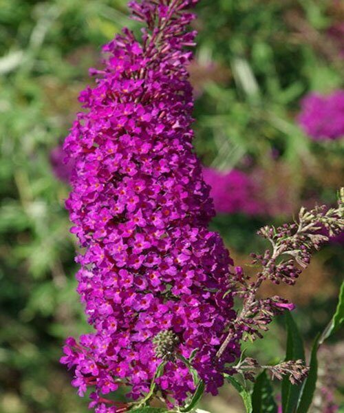 Один из самых ароматных и красиво цветущих кустарников 1-2 м высотой и 2 м шириной. Цветы яркие пурпурные, в очень крупных соцветиях 30-50 см длиной, очень ароматные, привлекают в сад насекомых-опылителей и бабочек.