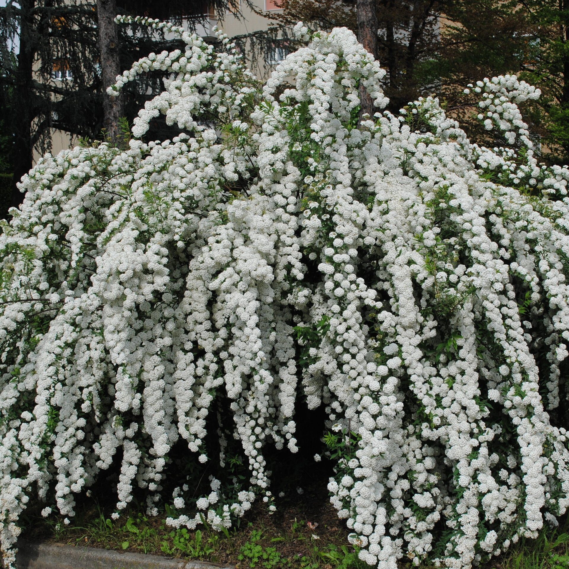 Раскидистый эффектно цветущий кустарник, высотой 1.5 м и 2 м шириной. Крона очень густая, ветви изящно изогнуты. Листья темно-зеленые. Цветки белые, в небольших щитковидных соцветиях, полностью покрывающих побеги. Устойчив к низким температурам. Прекрасный акцент поздней весной в каждом саду.
