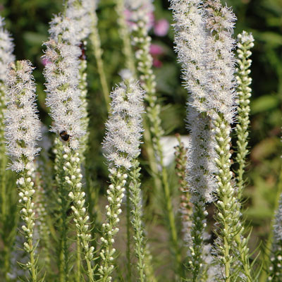 Лиатрис колосковый - травянистое клубнелуковичное растение высотой до 50 см. Цветки - мелкие корзиночки, собраны в колосовидное соцветие до 35 см длиной, разнообразной окраски. Цветет в июле-августе 35-40 дней.