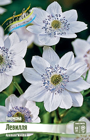 Белые цветки с темным центром. Лепестки снаружи сиреневатые. Беспроблемно зимует в Подмосковье без укрытия. Цветет в июне-июле. В природе анемона Левелли обитает на лугах, горных склонах. Стебли 30-50 см высотой. Листья пальчато-рассечённые. Цветки белые 2-2,5 см в диаметре, собраны в рыхлые соцветия. Цветение в июле. Для посадки выбирайте полутенистые участки с богатыми рыхлыми почвами.