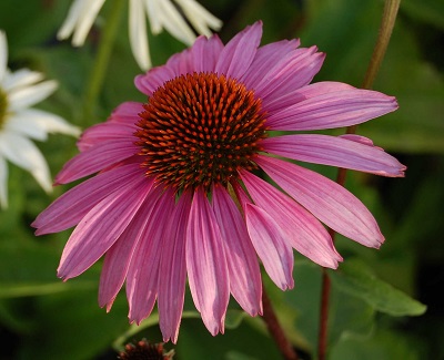 Эхинацея - многолетнее корневищное травянистое растение. Стебли прямые 100-150 см высотой. Прикорневые листья на длинных черешках, овальные; стеблевые — ланцетные, сидячие или почти сидячие. Соцветия — крупные корзинки, краевые цветки язычковые, красные, розовые или белые; серединные — трубчатые, темно-красные или красно-коричневые.