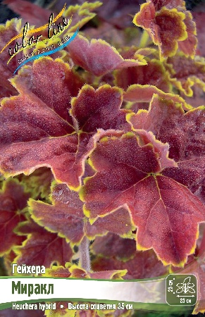 Невысокое почвопокровное растение - достигает высоты до 30 см, диаметром до 40 см. Листья длинночерешковые, собраны в прикорневую розетку. Растет гейхера довольно быстро. Листья очень эффектные, бархатистые, трехгранные, с глубоким рассечением. Листовая пластинка округлая, лопастная, зубчатая. При распускании листва имеет зеленовато-желтый цвет, с возрастом переходяший в красно-фиолетовый, с изящной желтой окантовкой по краю.