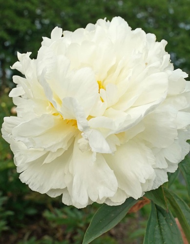 Пион молочноцветковый Фринжд Айвори — белоснежный шедевр, пленяющий своей чистотой и гармонией форм. Его махровый цветок представляет собой идеальное сочетание внешней простоты и внутренней изысканности. Внешние лепестки плотно уложенные, расположены в несколько рядов защищают внутреннее пространство, заполненное нежными бахромчатыми лепестками, отсюда и название. Цветок достигает внушительного размера около 15 см в диаметре, демонстрируя прекрасную симметрию и безупречную структуру. Окрас лепестков чистый, молочно-белый, похожий на тон слоновой кости, создающий ощущение лёгкости и воздушности. Золотые нити тычинок просвечивают сквозь тонкие лепестки, украшая сердцевину цветка. Высота взрослого куста составляет 80-85 см, благодаря чему растение прекрасно вписывается в разнообразные декоративные композиции. Тёмно-зелёная листва добавляет законченности образу, подчеркивая контраст между яркими красками цветков и спокойствием зелёного фона. Несмотря на умеренную интенсивность аромата, Fringed Ivory привлекает внимание своим уникальным внешним видом и превосходными декоративными качествами. Это удивительный выбор для любителей белых пионов, желающих создать в саду атмосферу умиротворения и гармонии.