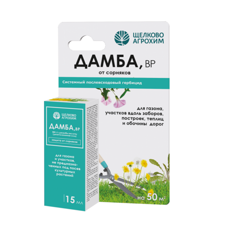 «Дамба, ВР» – средство для борьбы с широким спектром двудольных сорняков на газонах и участках, не предназначенных под посев культурных растений. Дамба, ВР применяется по активно вегетирующим сорнякам в интервале температур от +10 °С до +28 °С. Максимально рекомендованная норма расхода препарата используется при высокой засоренности и по переросшим сорнякам. Опрыскивание производится в утренние или вечерние часы в безветренную погоду, чтобы препарат не попал на соседние культуры. Не проводить обработку при обильной росе или если в ближайшие 4 часа ожидается дождь.