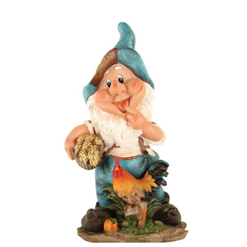 —Садовая фигура Гном с пшеницей и петухом 12596 (М)