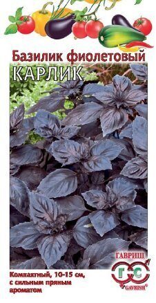 Компактное растение высотой 10-15 см. Идеально для выращивания в горшках на балконе и в комнатных условиях, в качестве декоративной и пряно-вкусовой культуры. Листья среднего размера, яйцевидные, темно-фиолетовые, ароматные, содержат много витаминов и минеральных веществ. Используют в качестве приправы к салатам, супам, гарнирам из овощей, хорошо сочетается с мясными и рыбными блюдами. Базилик обладает тонизирующими свойствами, улучшает пищеварение. Выращивается в рассадной и безрассадной культуре. Посев на рассаду производят в конце марта – начале апреля. Посев в грунт — в мае или начале июня. Высадка рассады в грунт – в начале июня. Схема посадки: 30x30 см. Предпочитает хорошо структурированные, богатые гумусом почвы. Нуждается в регулярных поливах.