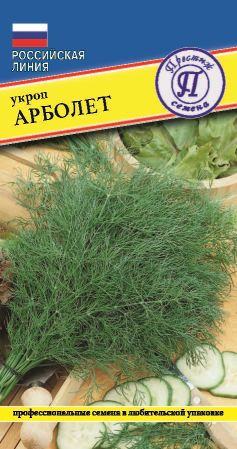 Арбалет- раннеспелый. Розетка листьев полуприподнятая, компактная. В розетке 9-10 листьев, высота розетки 40 см, диаметр 24 см. Стебель зелёный, средней длины, крупного диаметра, без воскового налета. Лист средней длины, зелёный, ромбовидной формы, среднерассеченный, восковой налет слабой интенсивности. Конечные сегменты листа короткие, средней ширины, уплощенно-нитевидные. Центральный зонтик выпуклый, диаметром до 15 см, число лучей первого порядка, до 30-35 шт. Масса одного растения при уборке на зелень - 35-40 г, на специи - 60-65 г. Ароматичность сильная. Предназначен для использования в свежем виде и кулинарии.