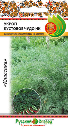 Находка для любителей пряной зелени: самый поздний по началу стеблевания укроп, длительное время пригодный на зелень. Растение кустовое, лист сильнорассеченный, очень крупный: более полуметра в длину и ширину! Стебель нежный и сочный. Не повреждается вредителями и болезнями. Хорош для использования в свежем виде и для замораживания.