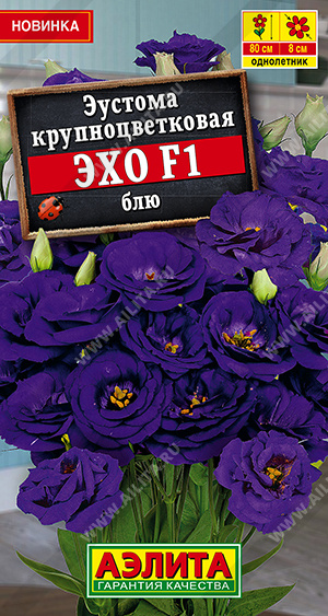 Знаменитая классическая серия «Echo» от компании Sakata. Это первая в мире гибридная срезочная эустома с полностью махровыми и очень крупными цветками диаметром до 7-8 см. Тонкие цветоносные побеги этой культуры отличаются особенным изяществом, устойчивостью и прочностью. Высота взрослого растения достигает 70-80 см. Мало какие цветы сравнятся по своей декоративности и изысканности с красавицей-эустомой. При ее выращивании важно учитывать, что ускорить начало цветения можно регуляцией длины светового дня, температуры и степени освещенности растений.